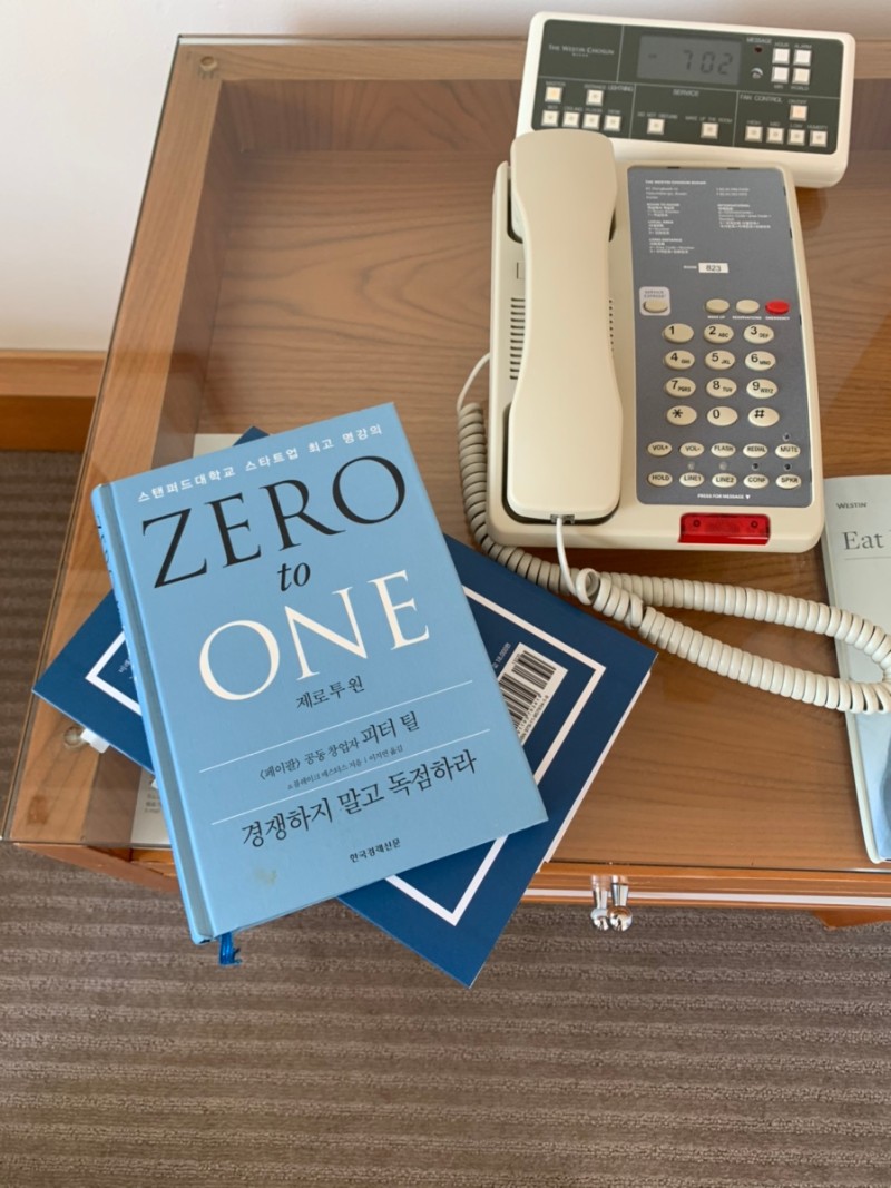 4.책캉스를 위해 가져온 책은 피터틸의 “제로투원”이다. 호텔에 있으면서 많이 읽고 싶었지만 1페이지 읽고 바다한번 보고 또 한페이지 보다가 바다 보며 멍때리기 하며 생각보다 많은 페이지를 넘기진 못했다.