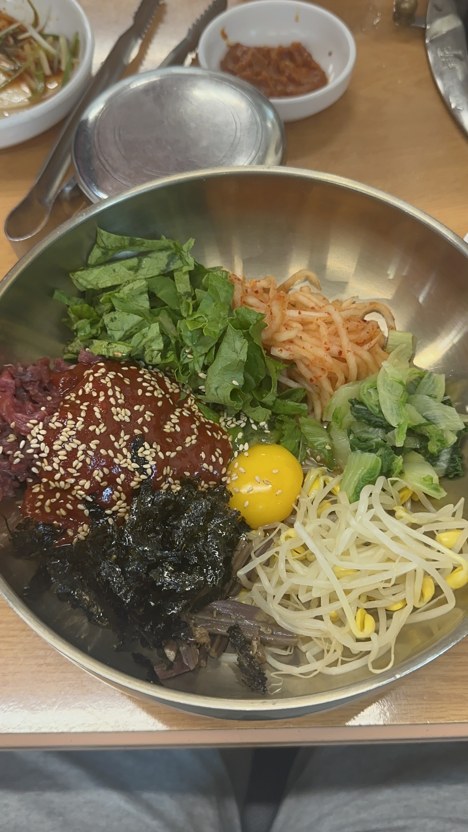 고기를 다 먹고 난 뒤 우리 부부는 누룽지를 아들은 육회비빔밥을 먹었다.