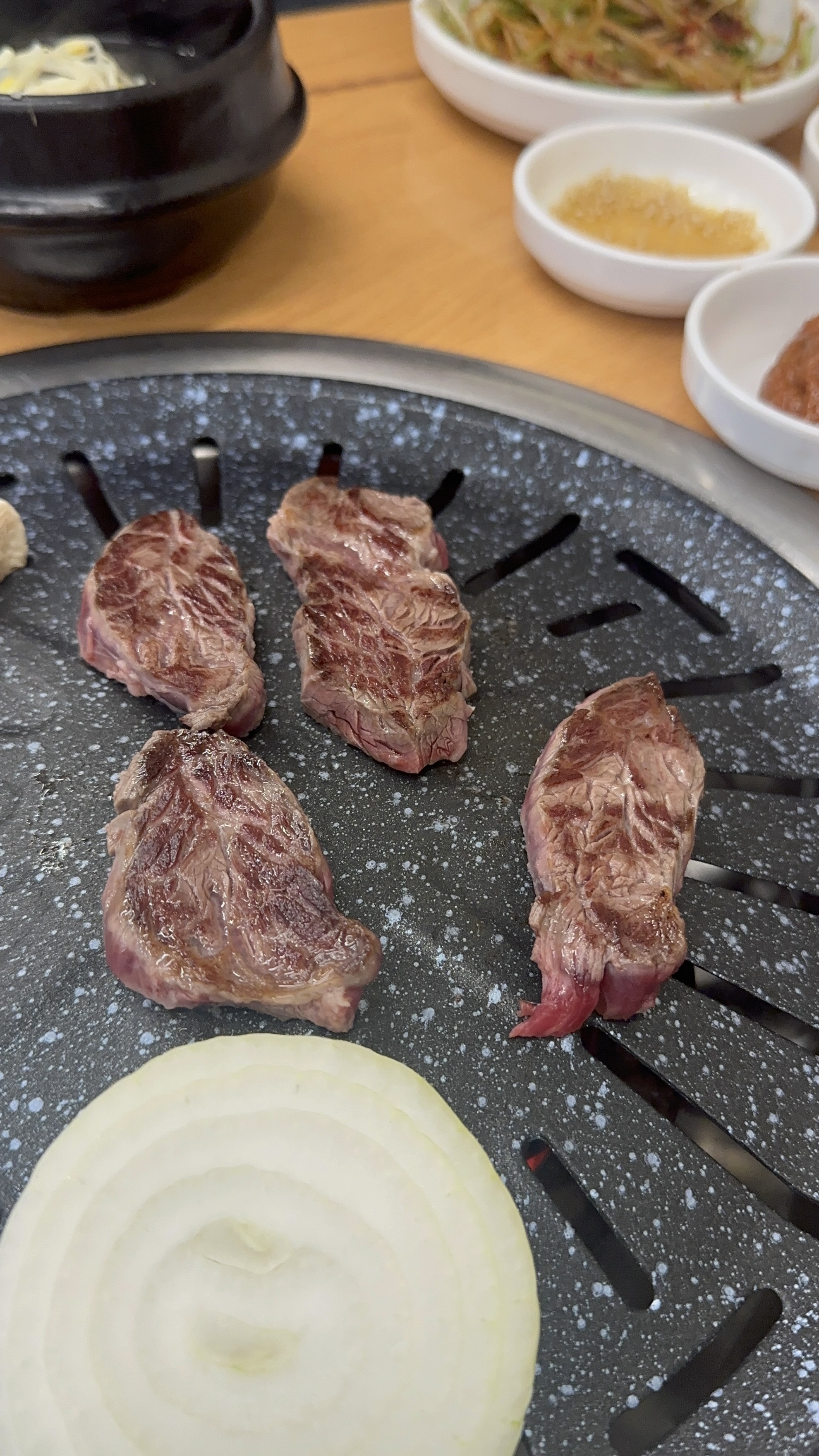 아들 휴가 복귀날이라 소고기를 든든하게 먹여서 들여보내야겠다 생각하고 갈빗살 1인분, 안심 추리 2인분을 주문해 3명이서 먹었다.