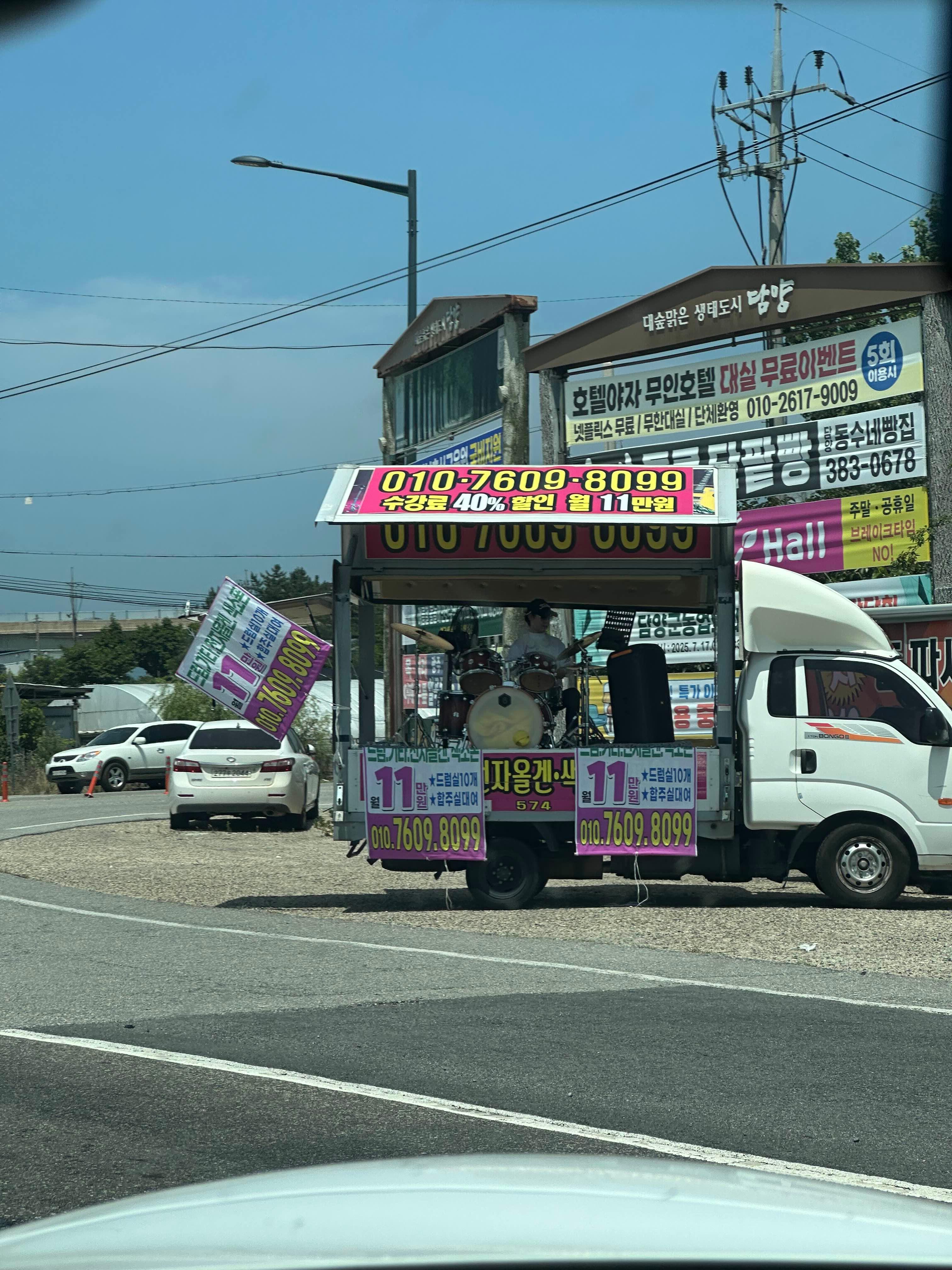 살인적인 더위에 드럼을 치고 있는 사람을 발견했다.