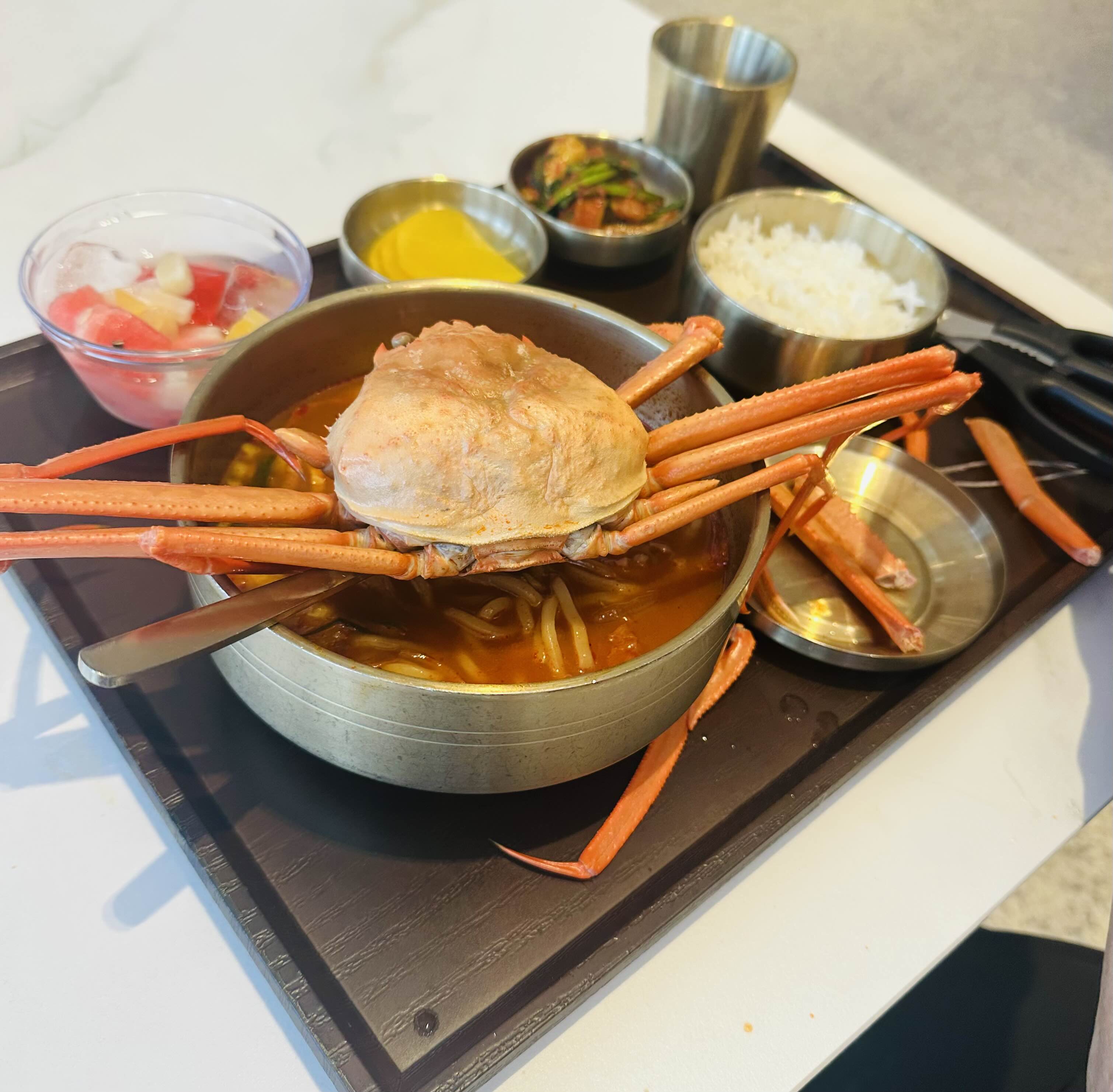 짬뽕위에 홍게가 올라왔다.