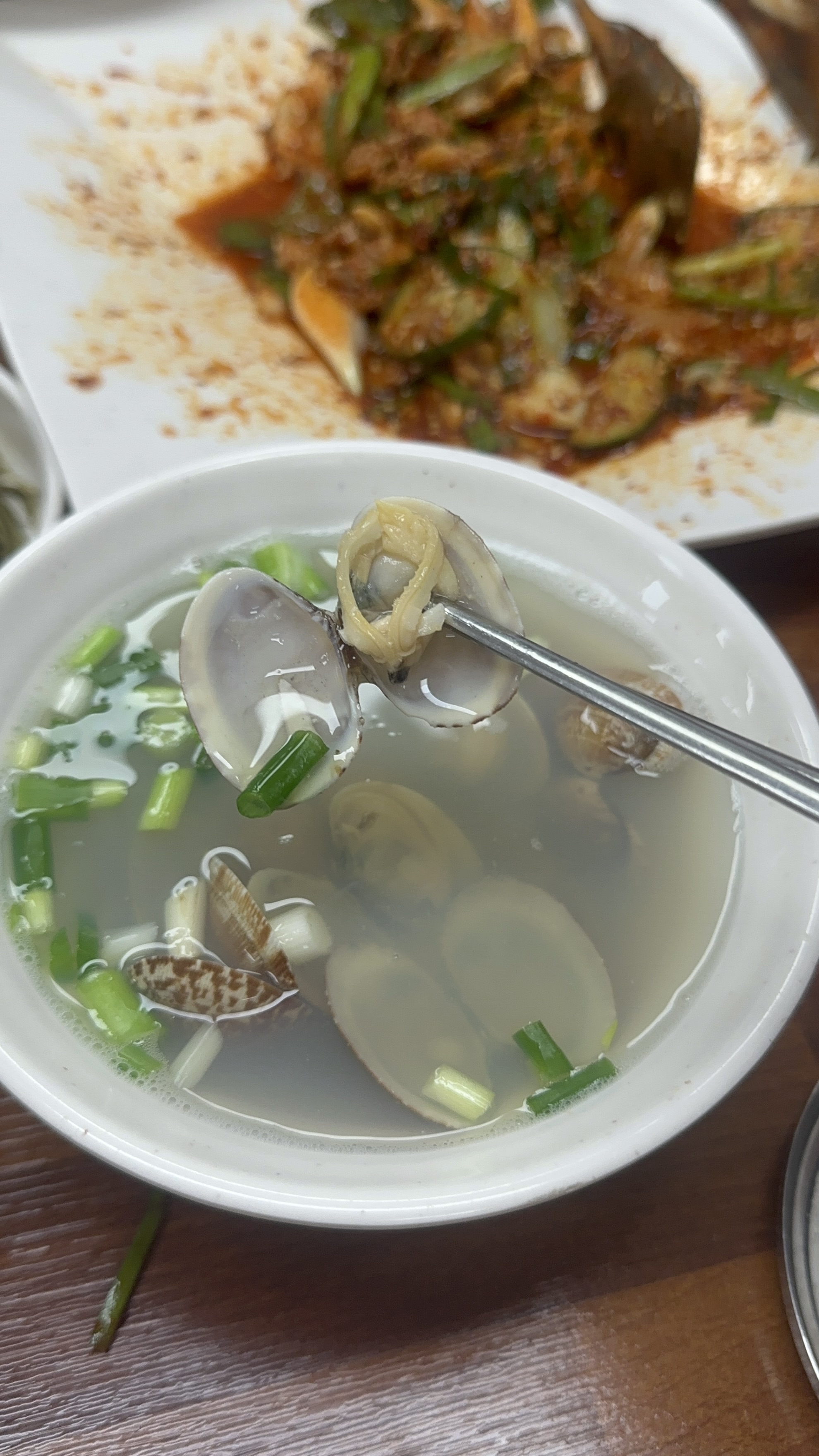 푸짐하게 바지락이 담긴 맑은 바지락 국물도 중간중간에 먹어주면 찰떡궁합이다.