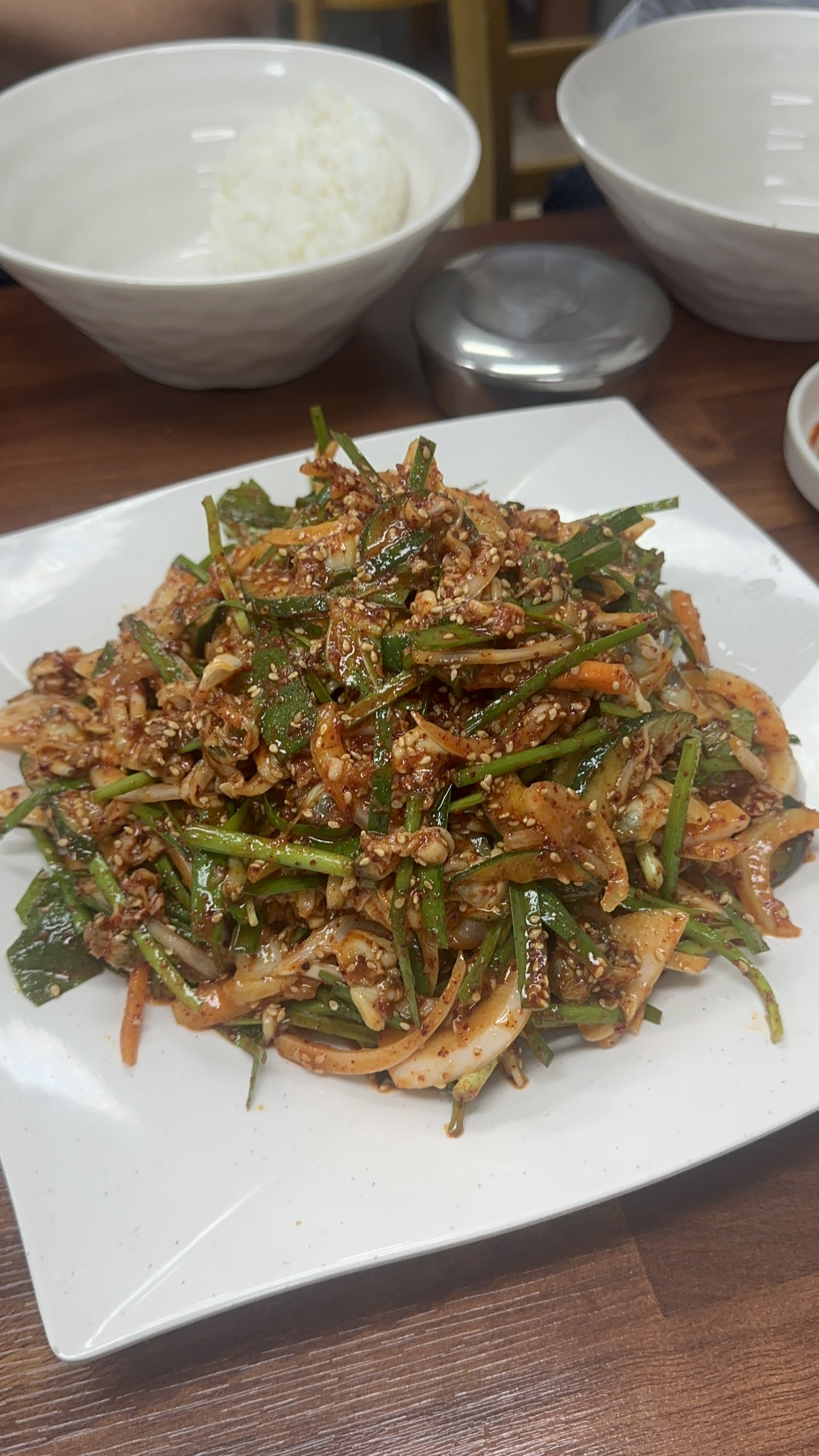 "바지락 무침"을 주문하고 비빔밥 그릇 4개도 같이 주라고 했다.