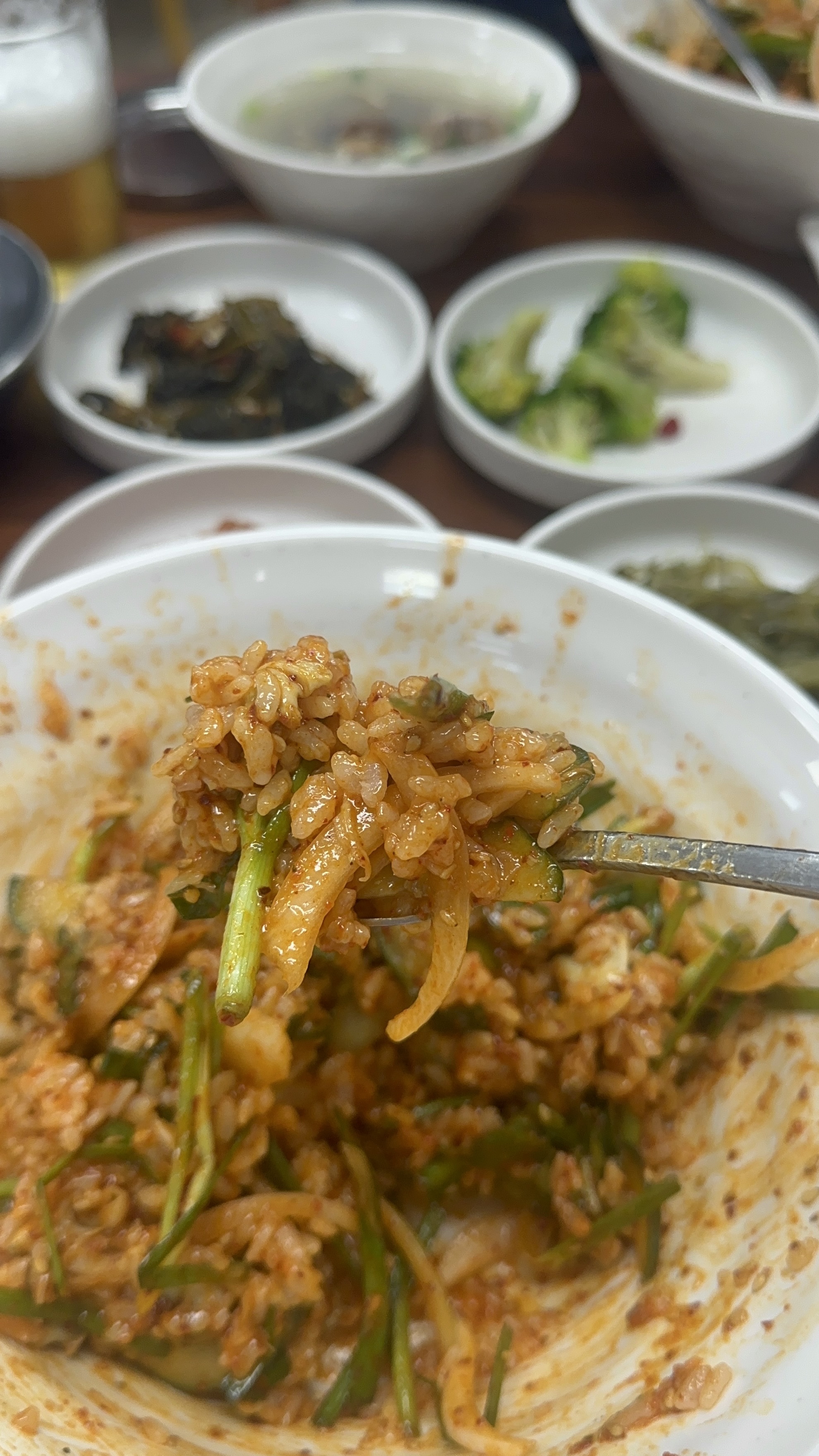 밥에 무침을 가득 부어 바지락 비빔밥을 만들어 먹었다. 땀을 얼마나 흘렸는지 바지락 무침에 맥주 한 잔이 너무 맛있었다.