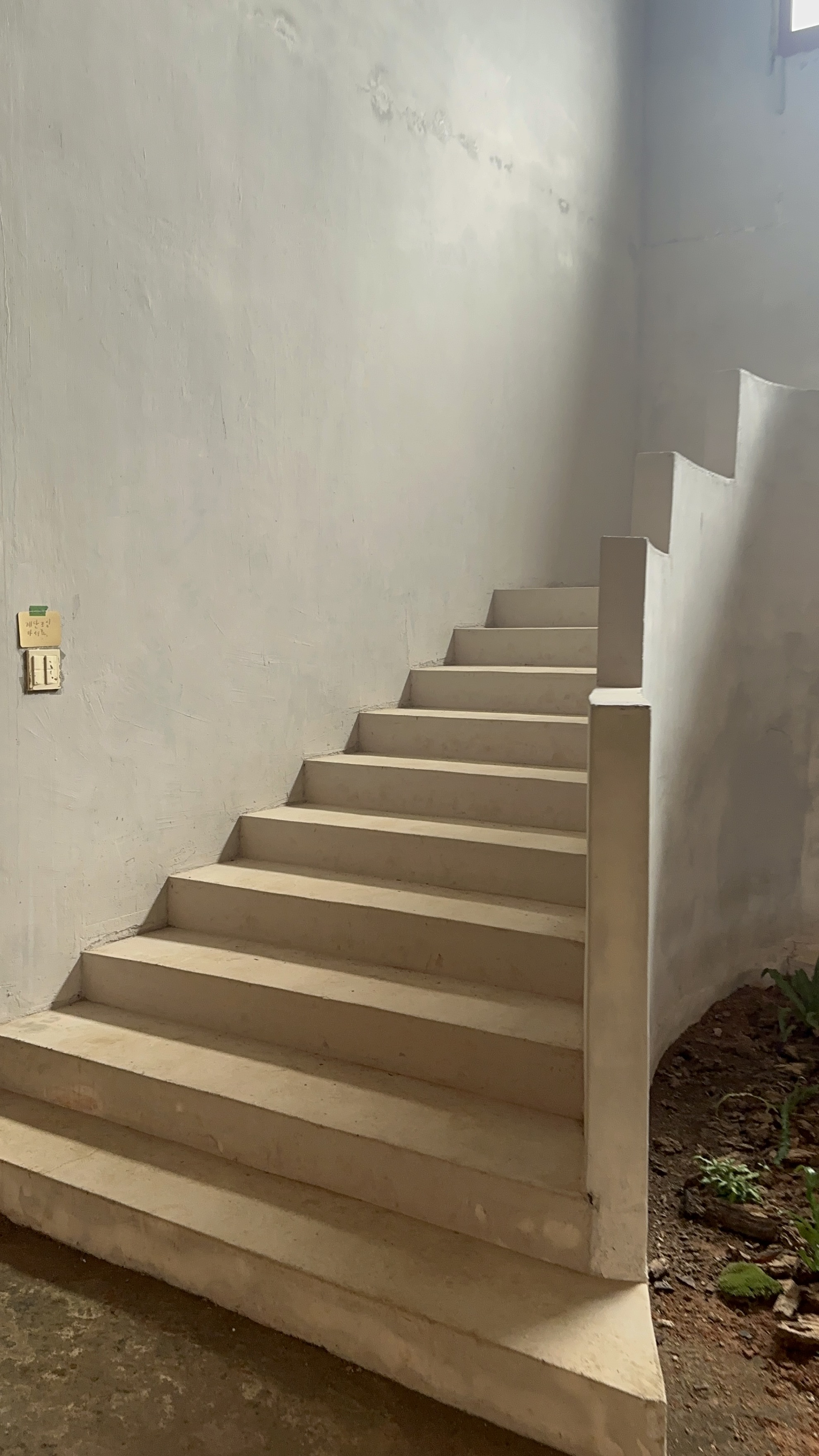 1층 가운데에 놓인 도자기와 여러 조형물들이 묘한 느낌을 주었습니다.양옆으로 곡석이진 하얀 계단을 타고 2층으로 올라갔습니다.