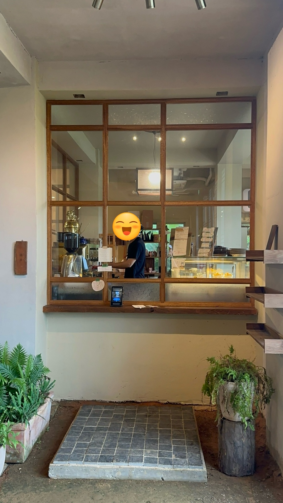 가운데 큰 창은 좁은 간격의 나무로 채워져있어 밖이 환히 보이는 요즘 카페의 통창과는 사뭇 달랐습니다.