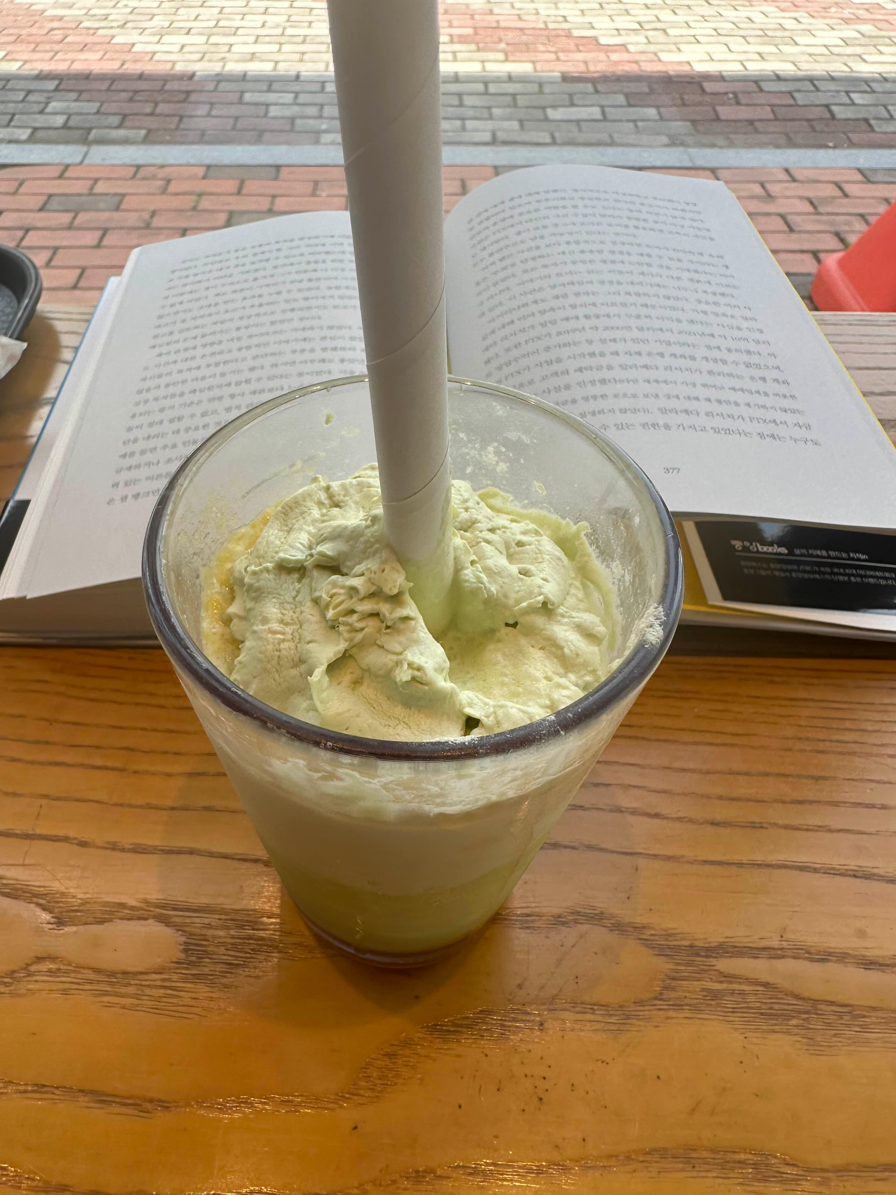 멜론 알갱이가 밑에 깔려 있어 잘 섞어 먹어야 한다.