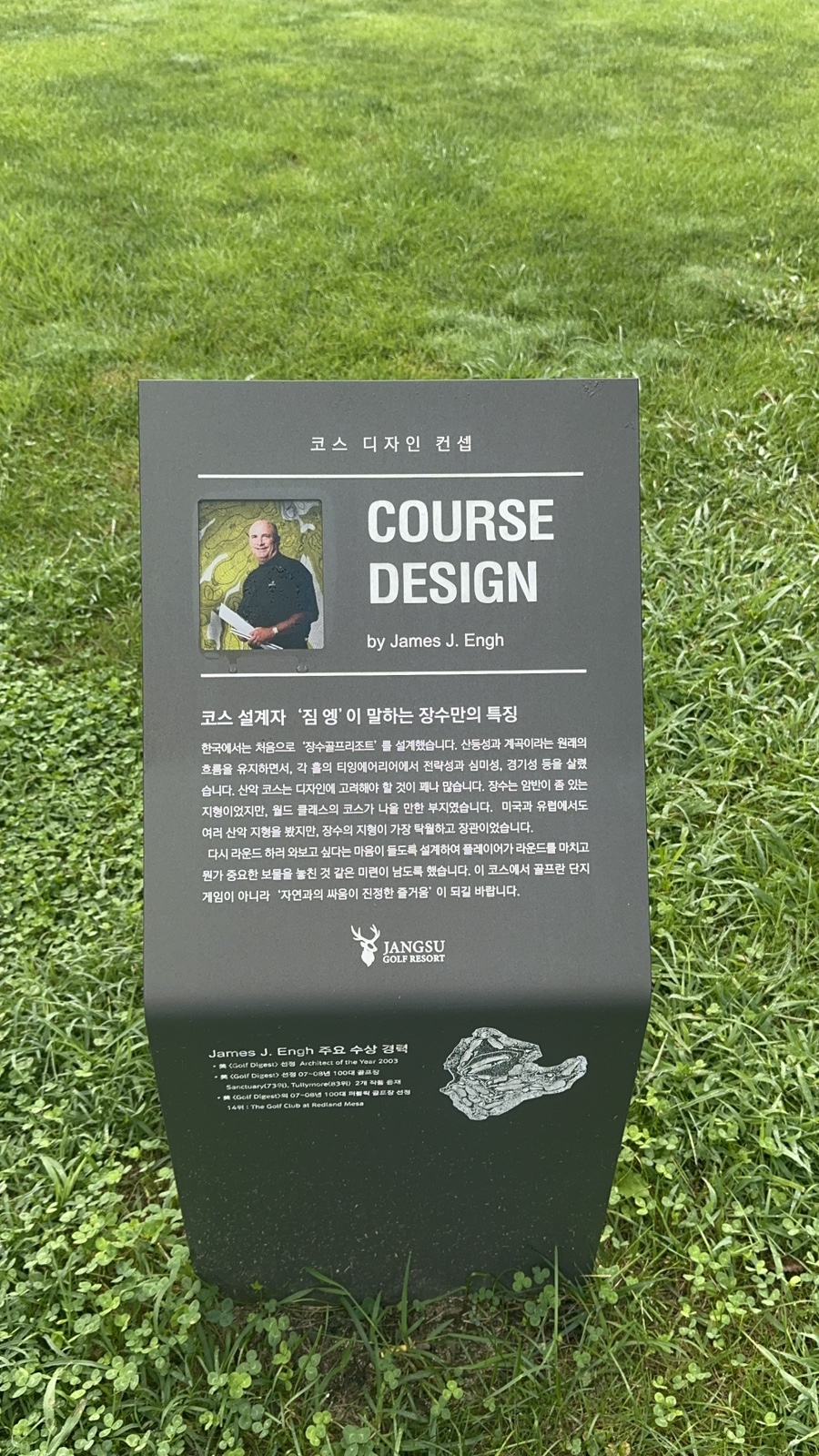장수cc는 스키 슬로프같이 오르막이 심한 홀들이 몇 개 있었고 좌우로 꺾인 홀들이 상당한데다 유명한 지옥이 3단 그린 홀까지 있어 스코어 내기가 쉽지 않기로 유명합니다.