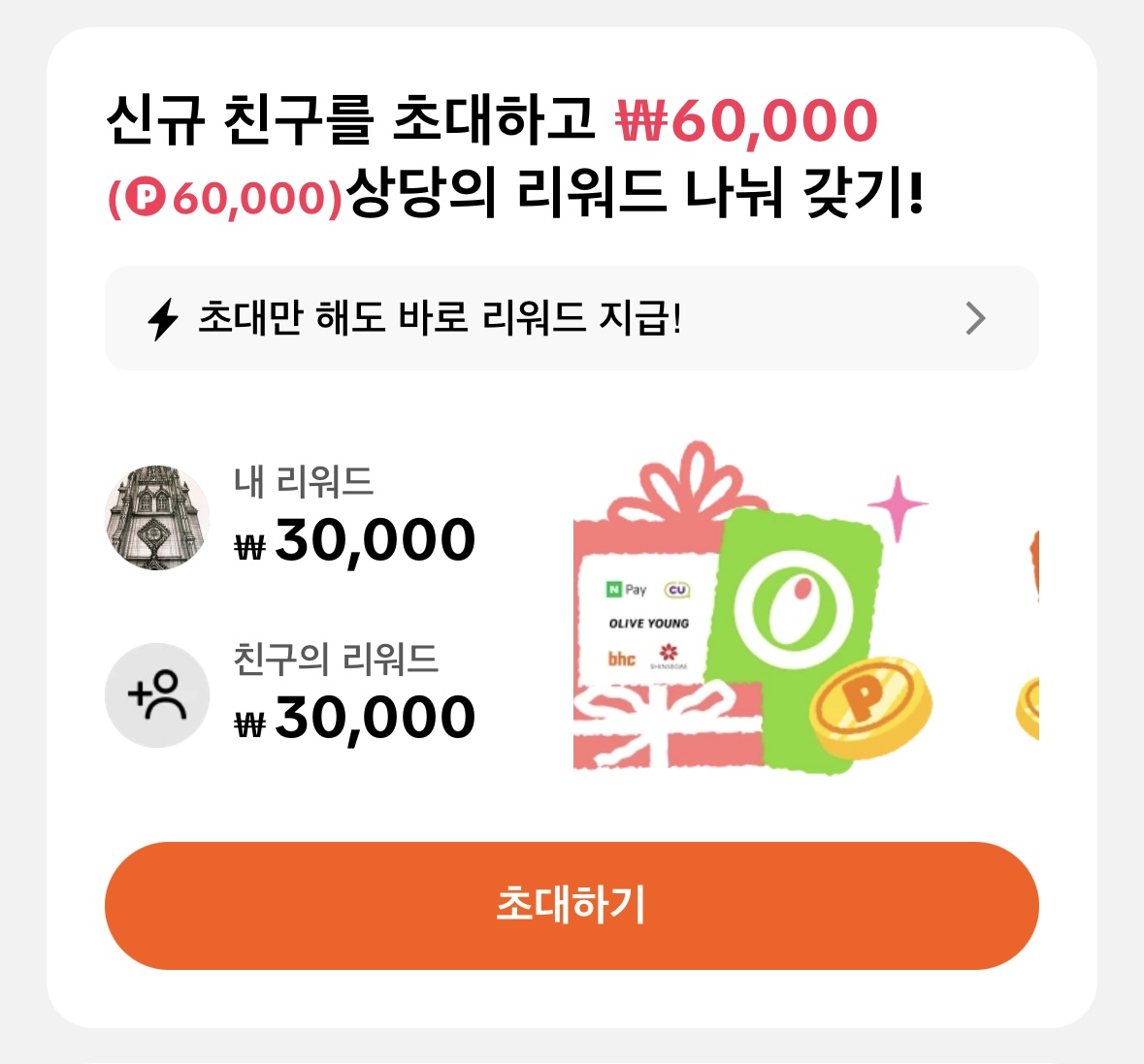 내가 처음 가입할 땐 내 소개를 통해 가입한 사람이 10일간 출석을 해야 받을 수 있었는데 지금은 그냥 가입만 하면 무조건 \3만원을 받을 수 있다.
