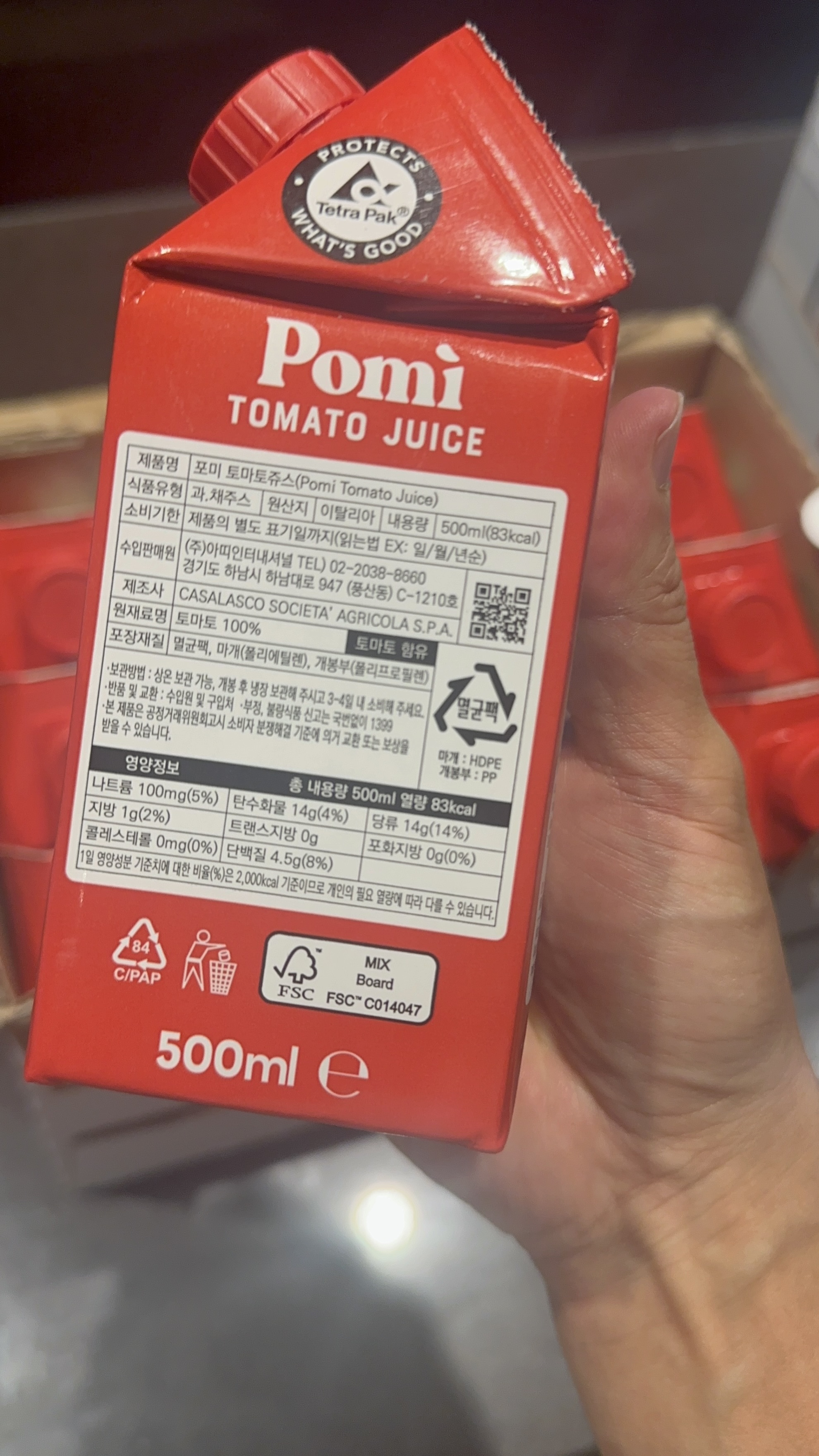 이탈리아산 "포미 토마토 주스"가 좋은 가격에 판매되고 있었다.아침에 와이프와 나눠서 한 팩씩 먹으면 딱 좋을 것 같았다.