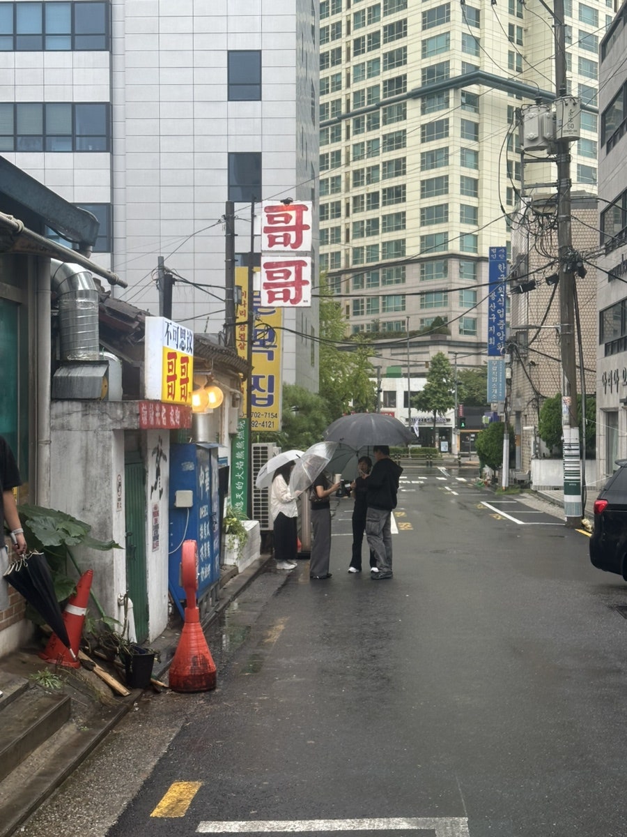 전시회 가기 전 용산 "꺼거"에서 아침을 먹기로 계획했다. 용산역에서 도보로 800미터 정도여서 걸어가야 하는데 빗줄기가 굵어졌다.