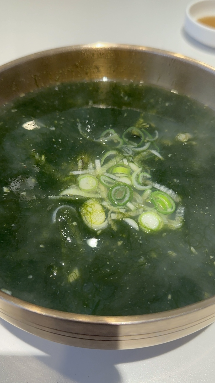 예전 매생이가 이렇게 뜨거운 줄 모르고 수저로 떠먹다가 혓바닥을 델 뻔 했는데 이번엔 수저로 빙빙 저으며 느긋하게 먹기 좋을 때를 기다리며 먹었다. 매생이가 풍부하게 들어있어 굴을 감싸고 있다.
