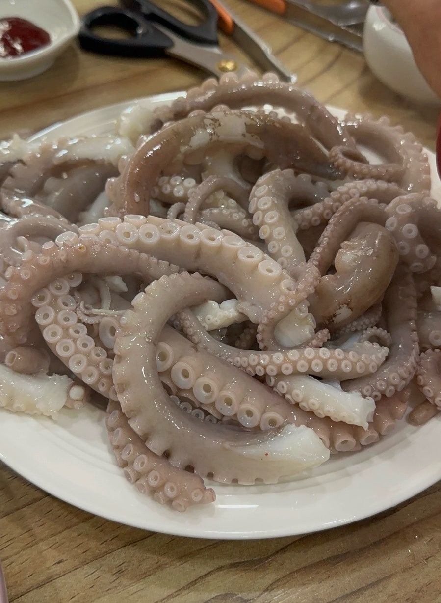 "나비의 꿈"은 낙지로 유명한 식당입니다. 낙지가 엄청 큰데 보들보들해서 가위를 쓰지 않고 이빨로도 낙지를 끊을 수 있습니다. 사장님이 낙지를 직접 뜨거운 물에 담가 데친 뒤 정성스레 잘라 주어 편합니다.