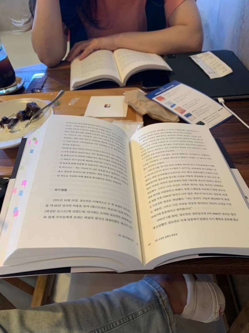 공간이 좁아 책 읽고 사색하기엔 완벽한 환경은 아니었지만 30분 동안 와이프와 책 읽으며 스피커에서 들리는 노래를 들으면 멍 때리기도 하고 옆 테이블에서 심각하게 오고 가는 커플들의 신혼집 마련 프로젝트에도 귀를 쫑긋 세우고 들으면 이 공간을 즐겼다.