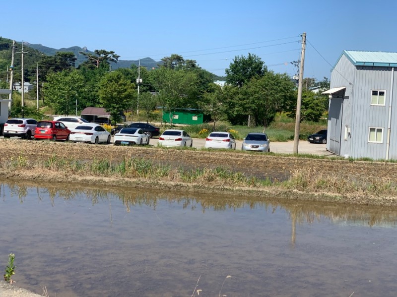 조용한 시골 마을 구불구불한 길을 따라 넓은 마을 주차장을 만나 차를 세워두고 논길을 따라 조금만 올라가면 "슬담 카페"를 만날 수 있었다.