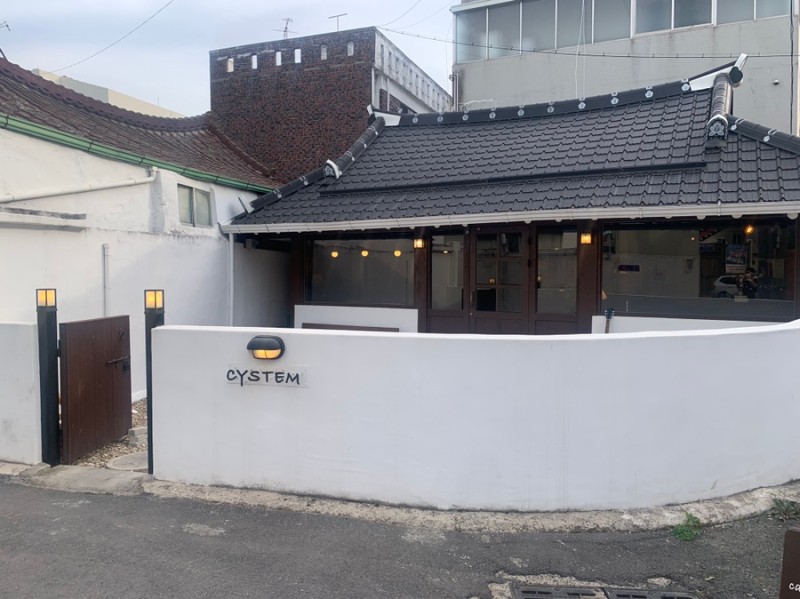 하얀 담장으로 둘러싸인 "시스템"은 한옥을 현대식으로 개조한 카페이더군요.