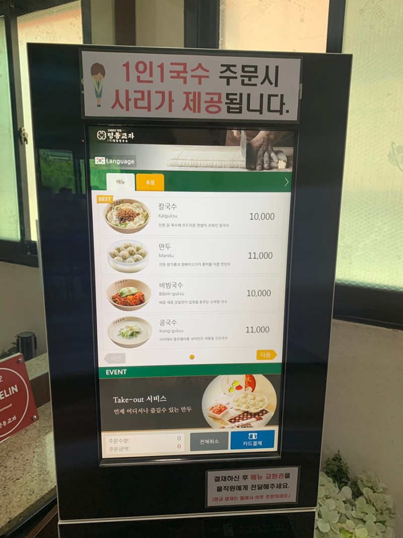 배가 가득 찬 상태이니 칼국수 하나랑 만두 1개만 시켜서 맛만 보자고 했습니다.