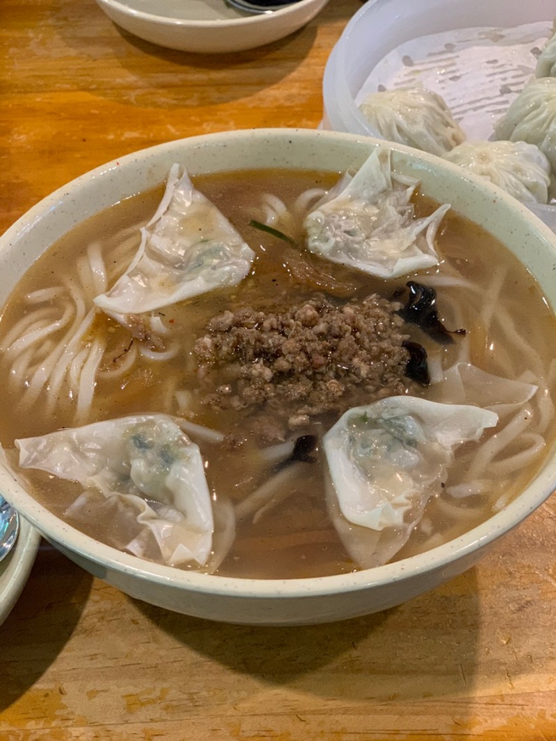 드디어 칼국수랑 만두가 나오고 마법에 걸린 것처럼 우리 부부는 식사를 하고 그릇을 말끔히 비웠습니다.