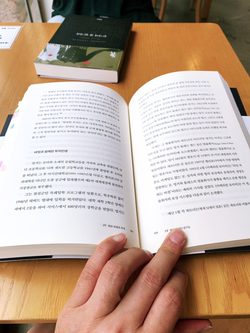 여젼히 워렌버핏 평전을 읽고있고 와이프는 고전소설을 읽고있다.