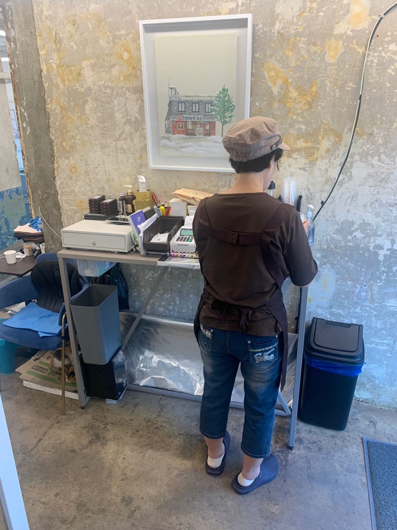 내가 주문한 라테를 만들고 다음으로 와이프의 아이스 아메리카노를 한 치의 오차 없이 뚝딱 만들기 시작했다.