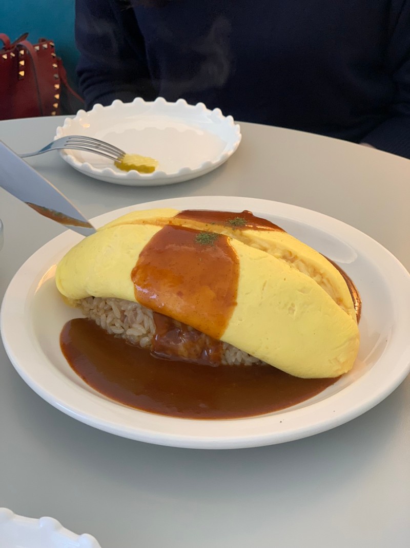 "목하식당"은 오므라이스와 카츠산도가 유명하다고 들었습니다.