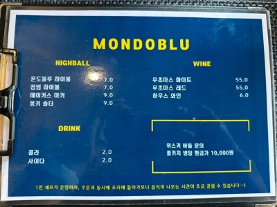 파스타 종류가 먹고 싶어 집 주변을 검색해 "몬도블루"란 레스토랑을 찾았다.