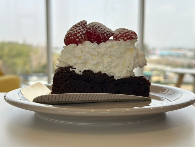 창가 자리는 명당이라 이미 만석.. 다른 자리에 앉아 아이스 아메리카노와 케이크 한 조각을 주문해서 먹었다. 빵을 직접 구워서 가져오니 신선하고 맛있었다. 딸아이 갖다 줄 빵을 하나 사 갔는데 "완전 자기 스타일"이라고 딸에게 합격을 받았다.