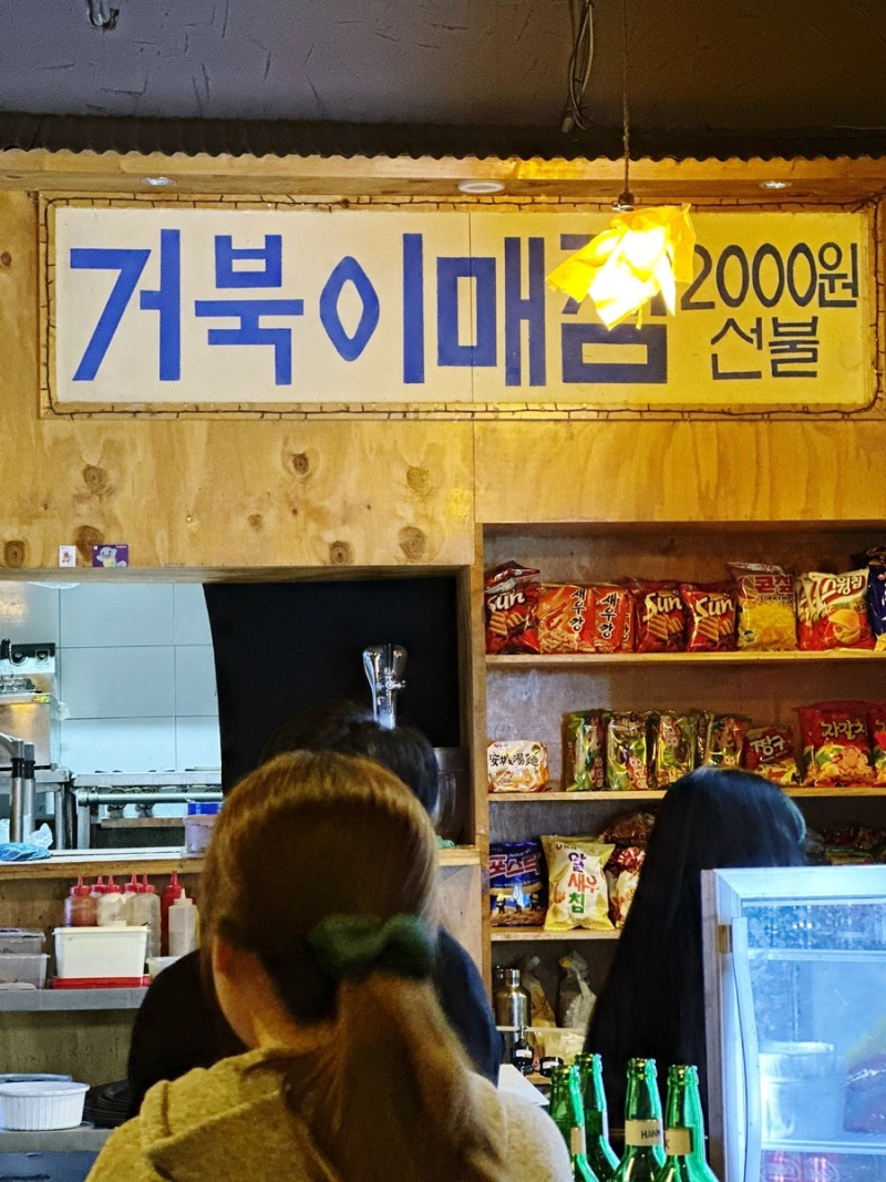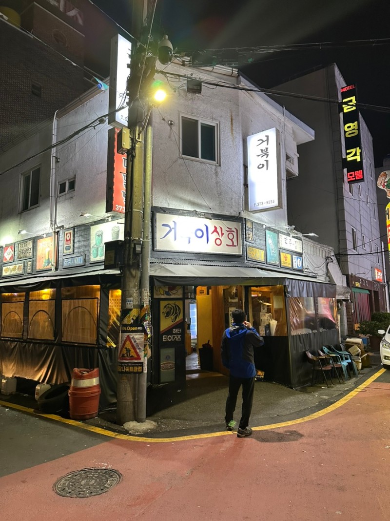 "거북이 상회"에 들어가 자리를 잡았다. 가게 앞에 적힌 "갑오징어 피데기"를 안주로 먹고 싶어졌지만 목소리 큰 친구의 "마른안주 세트"를 안주로 먹게 됐다.