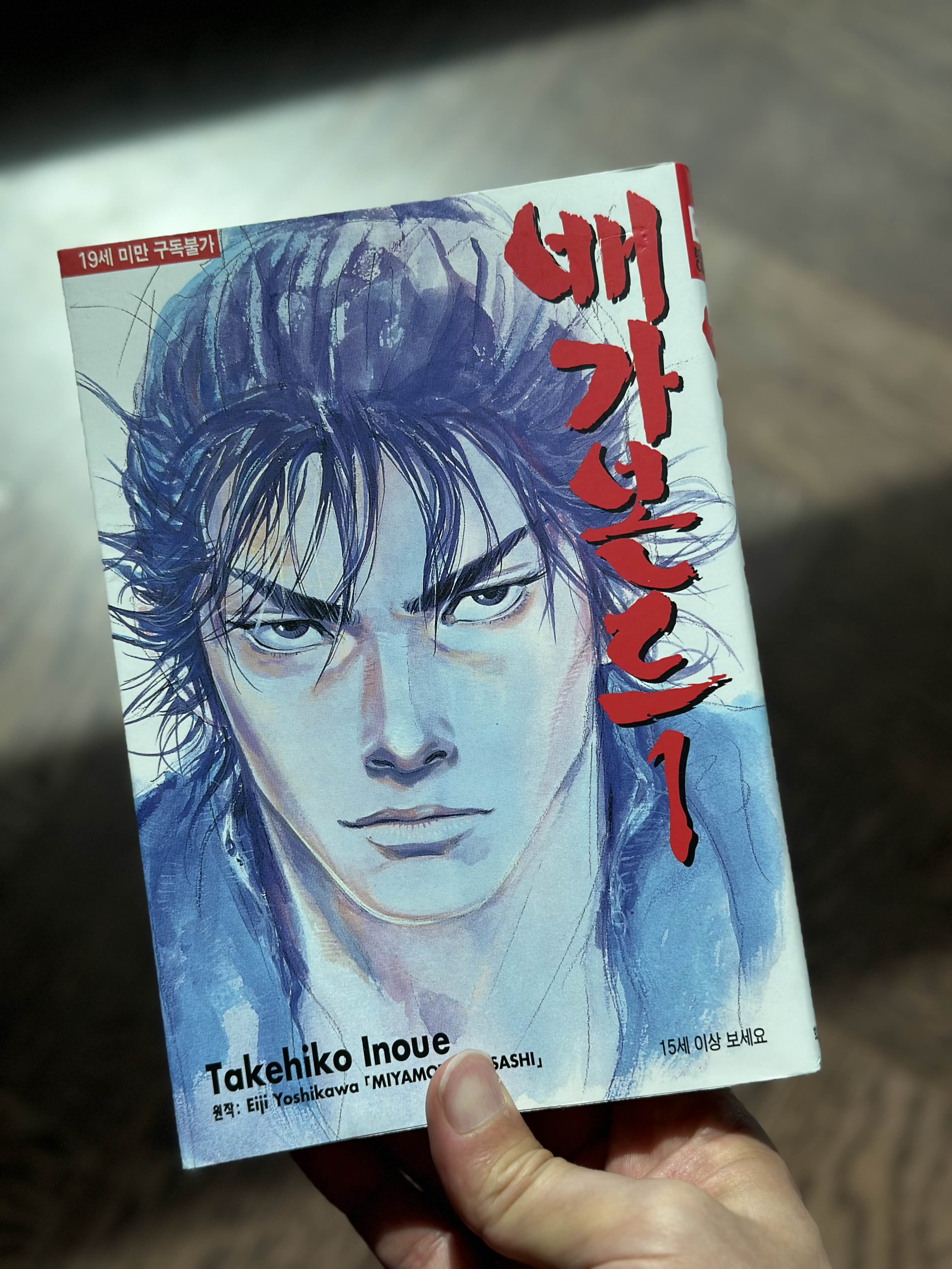 멈춰버린 연재처럼 나의 배가본드 읽기도 멈췄었다. 그러다 요즘 문득 다시 읽고 싶어져 배가본드 1편을 구매했다. 슬럼덩크의 인물들이 떠오르는 그림체가 "이노우에 다케히코"가 작가란 걸 알려준다.