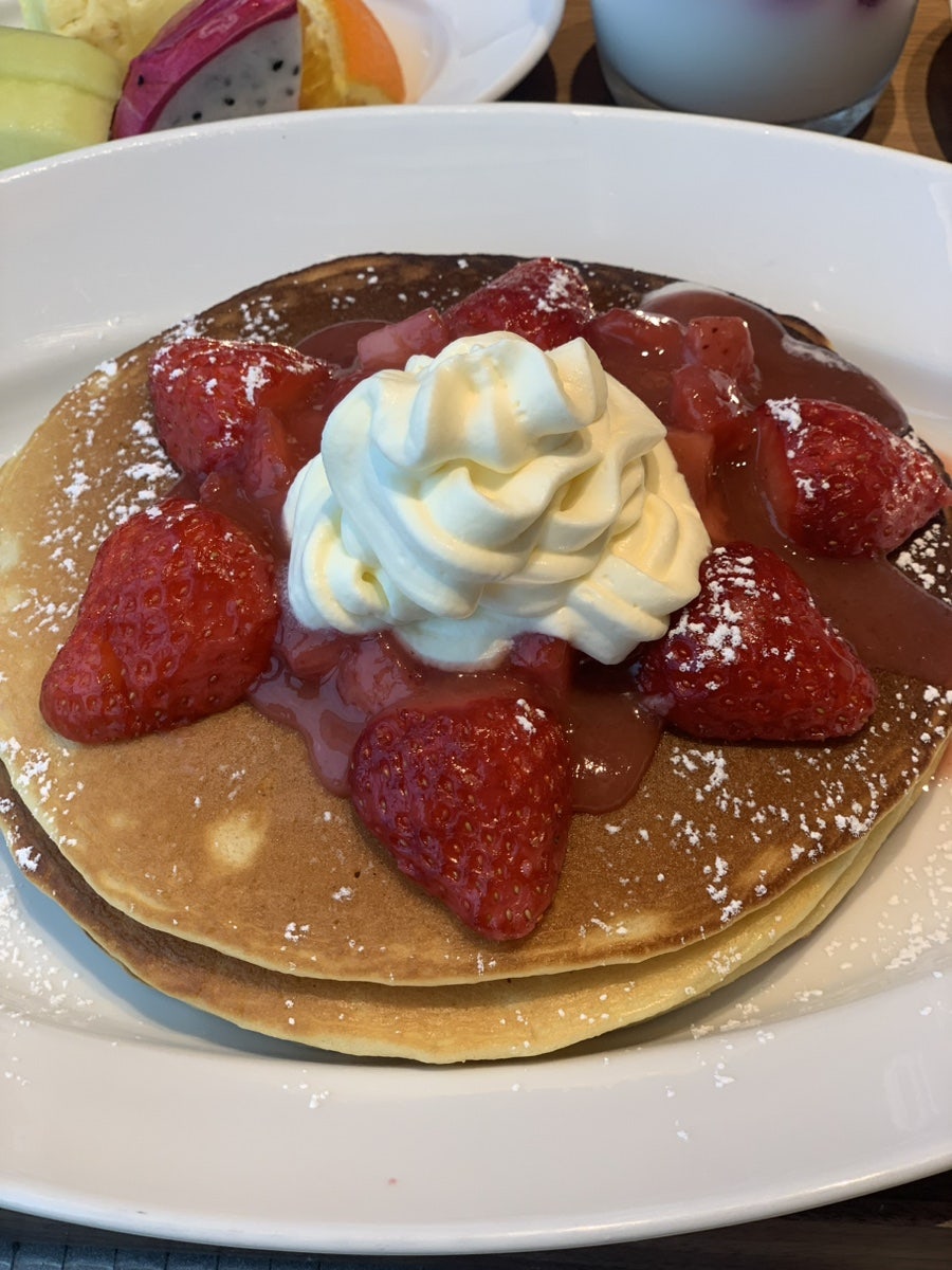아침엔 일찍 일어나 조식을 호텔에서 먹었다. 식당들이 종류별로 많았지만 팬케이크 같은 음식이 먹고 싶어 찾아갔다.