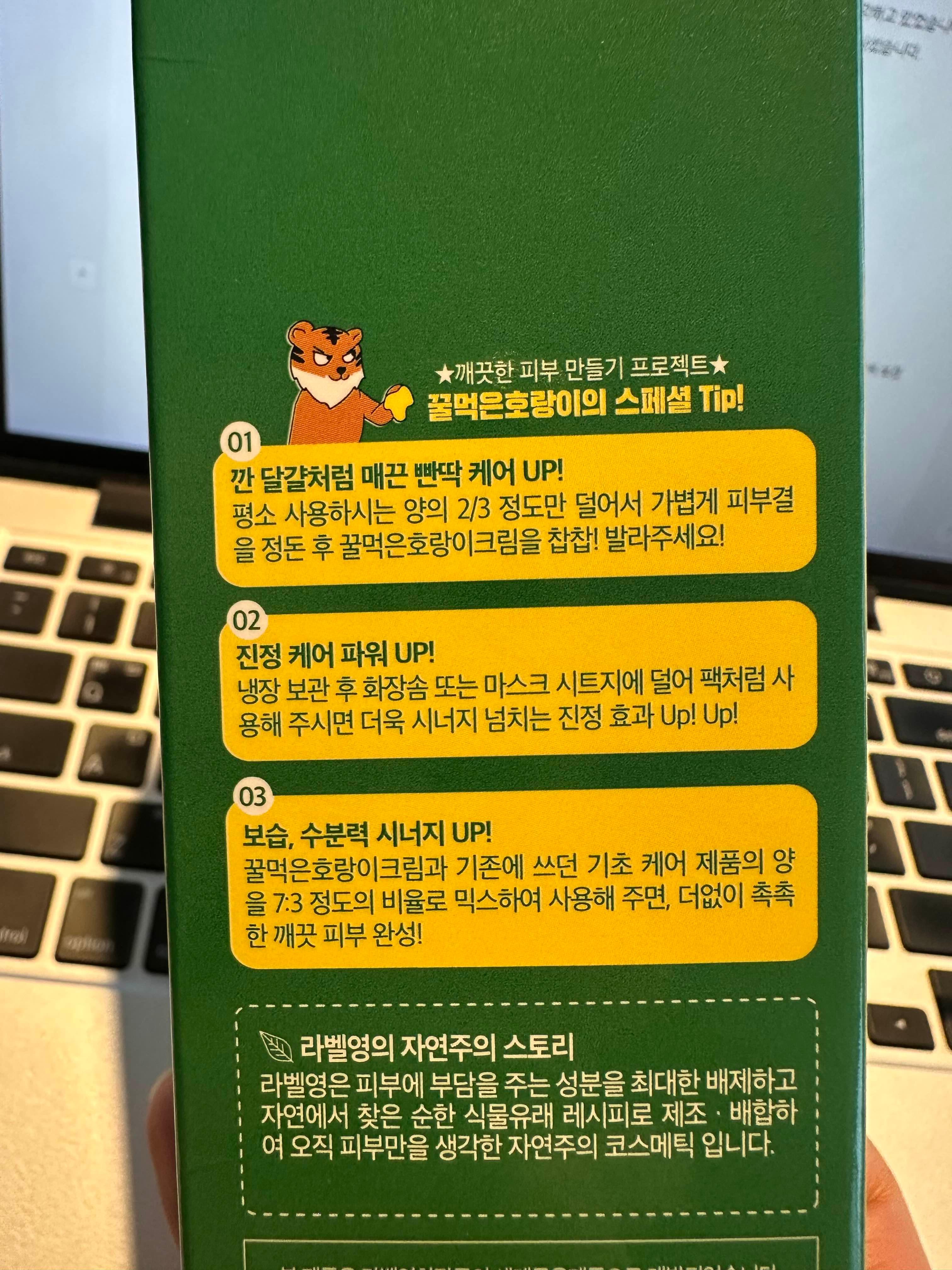 나름 신중한 판단으로 "꿀 먹은 호랑이" 보습 크림을 주문해서 오늘 사용해 보았습니다.