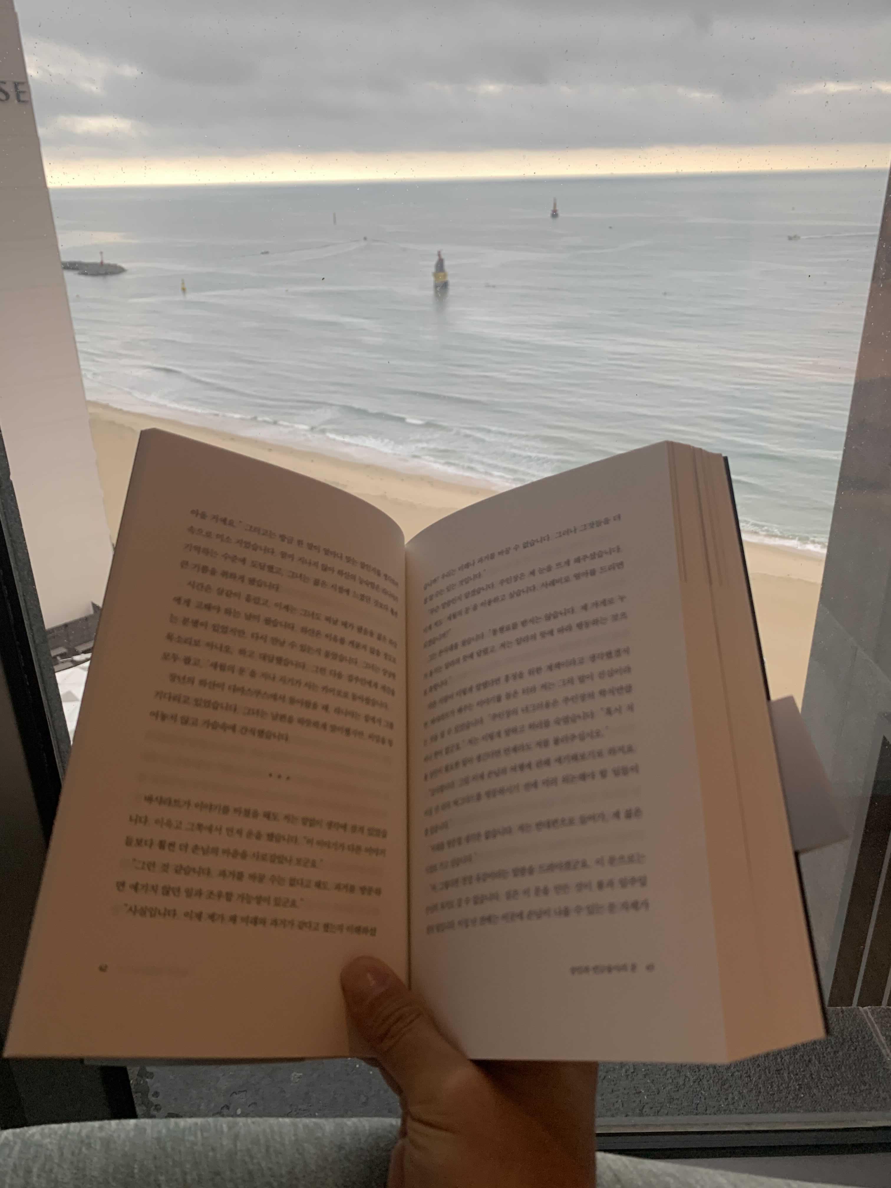 5. 밥을 먹고 들어와 테드창 작가님의 "숨"을 읽기 시작했습니다. 와이프는 제가 읽고 건네준 손원평 작가님의 "프리즘"을 읽었습니다. 책을 읽다가 해운대 바다를 조금 걷다 들어왔는데 바람도 많이불고 쌀쌀해 오래 있을순 없었습니다.