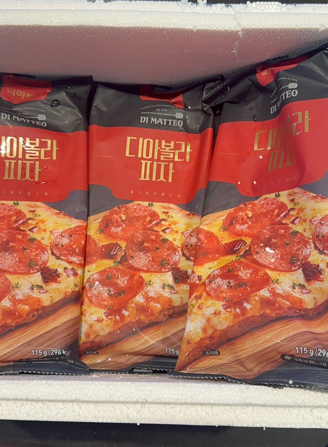 페퍼로니 피자인 "디아볼라 맛"은 살짝 매웠다. 이름에 왜 "디아볼라"가 붙은지 알 것 같다.