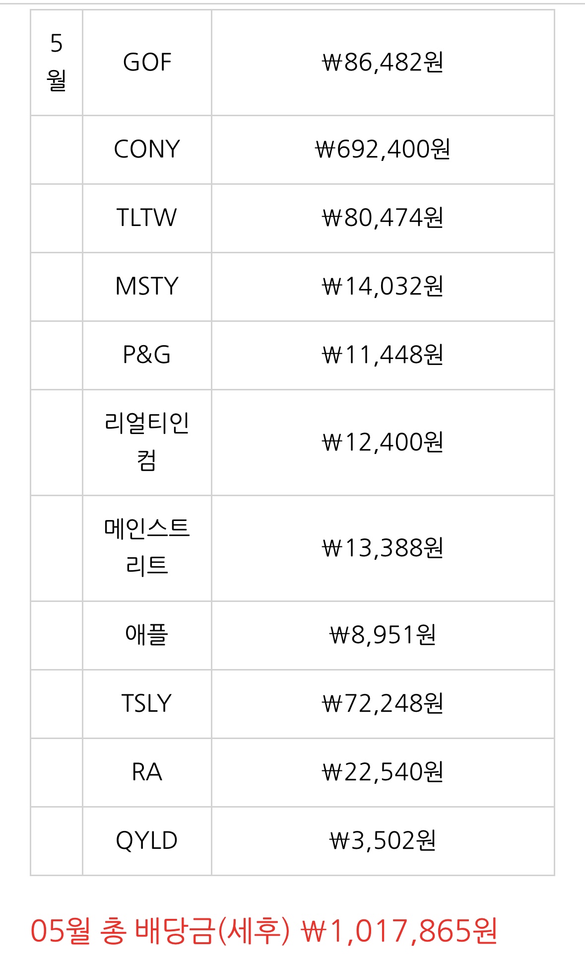 드디어 미국 주식 월배당 ₩1백만원을 달성했습니다.